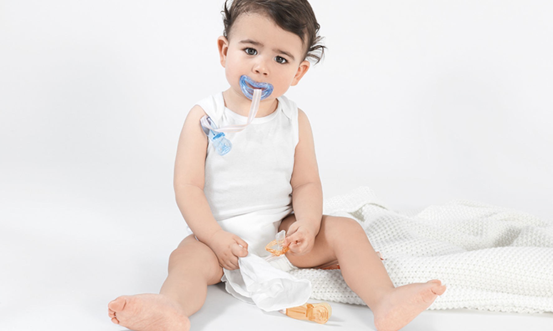 And don’t forget to clip on a Curaprox soother holder so your baby’s soother won’t get lost or dirty!